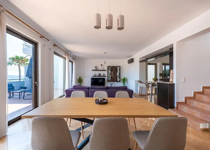 Die Gäste können den Alte Venezianische Hafen besuchen (in etwa 4 km Entfernung von der Villa), während der Leuchtturm von Chania etwa 10 Minuten mit dem Auto von der Unterkunft entfernt ist. Zu den nahe gelegenen kulturellen Sehenswürdigkeiten gehört der Kriegsbunker von Platanias (ist in einer Entfernung von ca. 15 Autominuten von dieser strandnahen Villa).